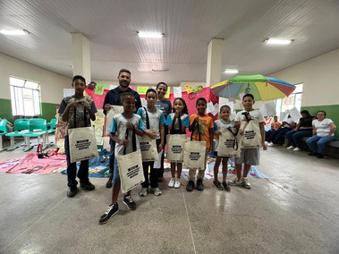 Durante as atividades, foi distribuído um material educativo que será utilizado ao longo do projeto em 2024. Cada criança recebeu uma bolsa contendo um livro de missões, um passaporte para registrar suas jornadas ambientais e uma revista em quadrinhos abordando os temas ambientais.